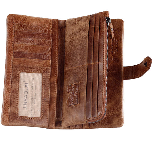 Men's Vintage Look Genuine Leather Long Bifold Wallet