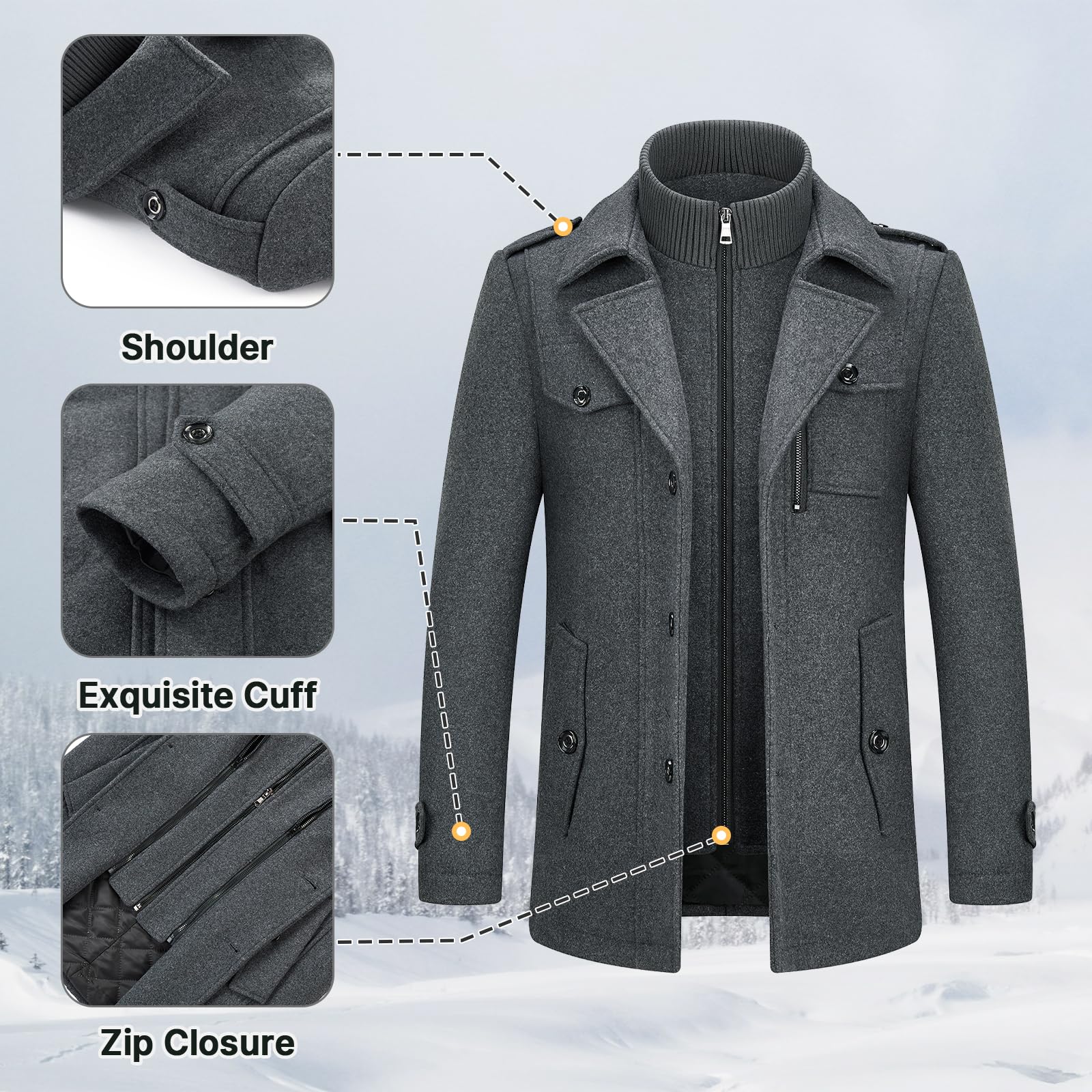 【Excellent Material】This classic coat is made of 70% Wool and 30% Polyester. We used high-quality fabrics and exquisite craftsmanship to make this coat soft, firm, comfortable, and warm.